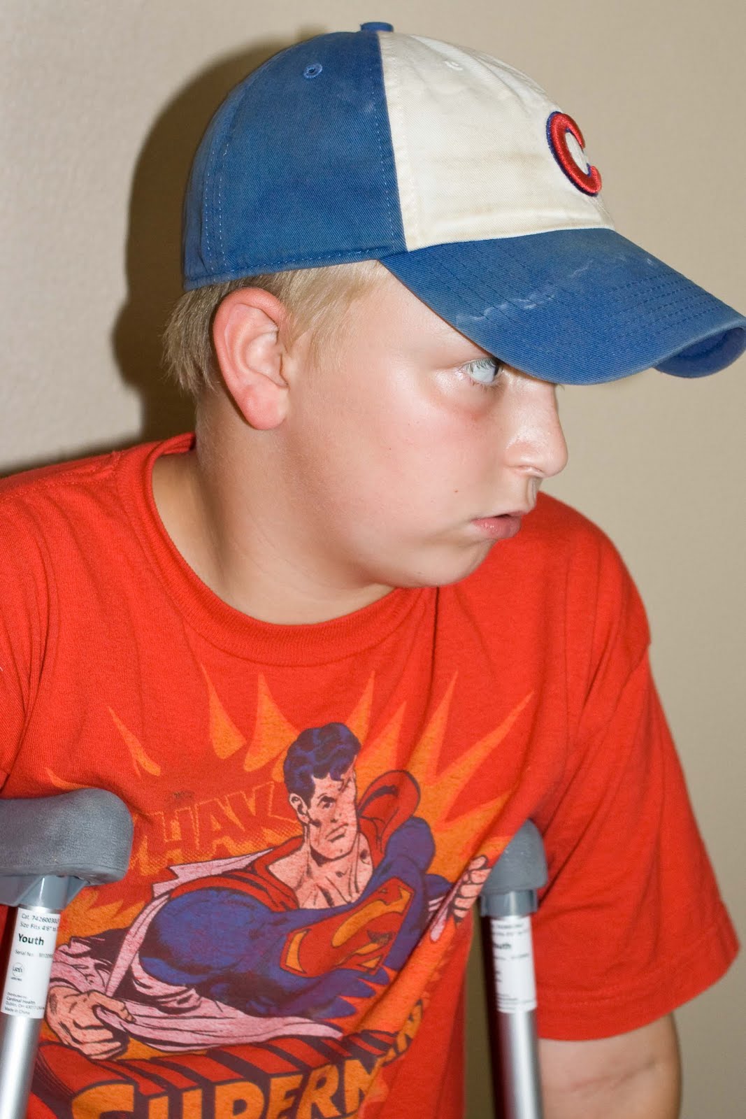 Okay now about Clint and the past tense reference with him and baseball,, He broke his foot! Well technically cracked his 3rd toe bone a good distance down the side of it! He did it at school on the playground. So no more baseball for him this season! They decided against putting him in a cast, thank god, and gave him a walking shoe cast and crutches for the next 4-6weeks.